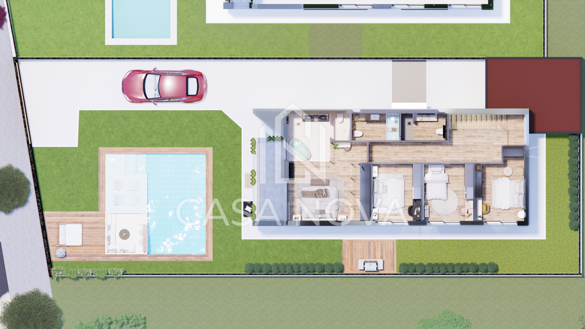 Destaca por su elegante arquitectura contemporánea y acabados de primera calidad. Además, la construcción sostenible incorpora paneles solares y sistema de aerotermia, garantizando un ahorro energético significativo y un impacto ambiental reducido. Imagina relajarte en tu propio oasis privado, disfrutando de la piscina y un entorno perfecto para reuniones con amigos y familiares.
