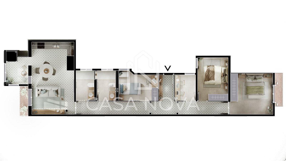 - Los renders muestran una visión aproximada del resultado final, con posibilidad de personalizar ciertos acabados y materiales (sujetos a disponibilidad y aprobación de la dirección de obra).